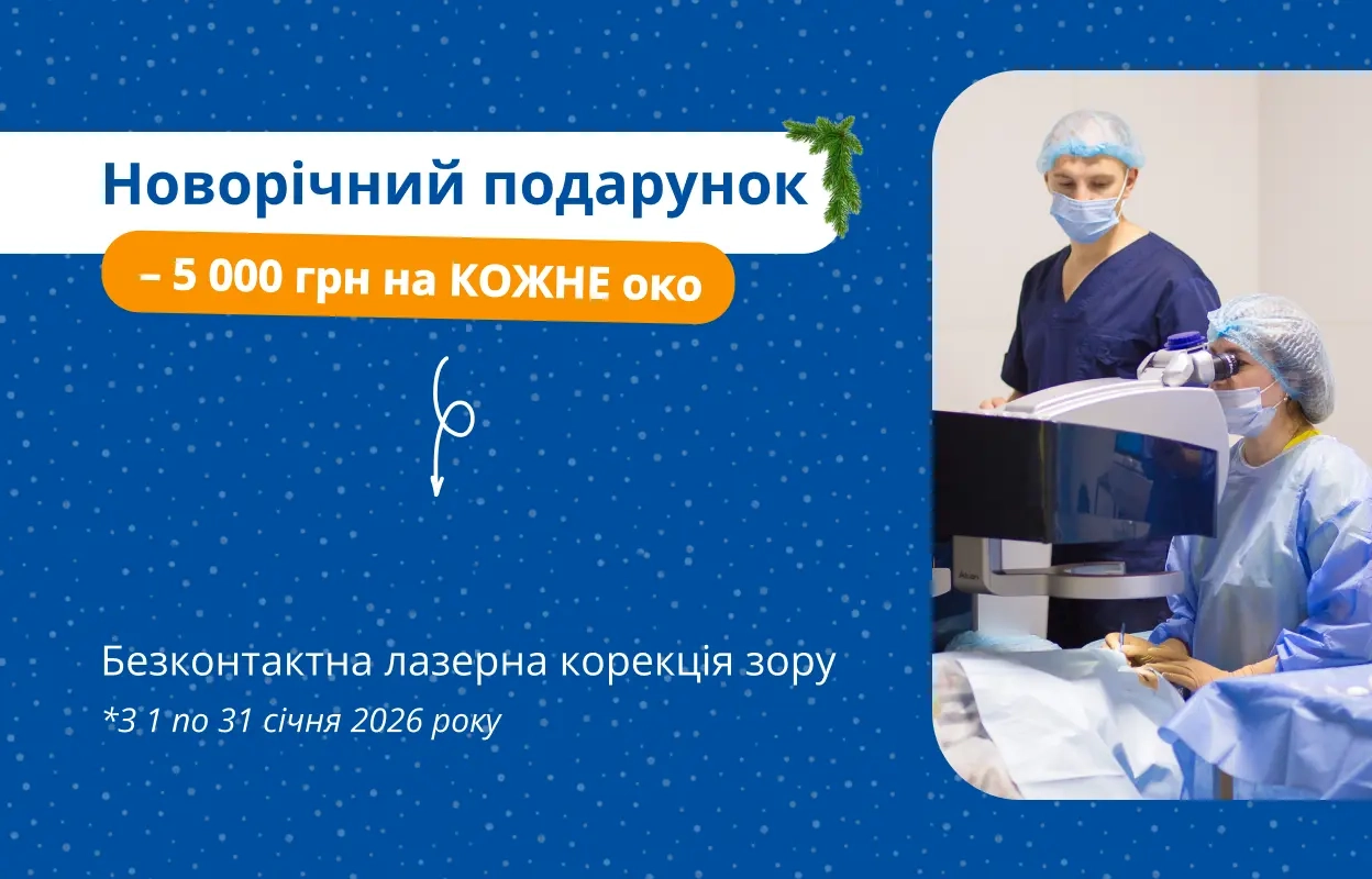 З 1 по 31 січня даруємо 5 000 гривень на КОЖНЕ око на безконтактну лазерну корекцію TransPRK (StreamLight).