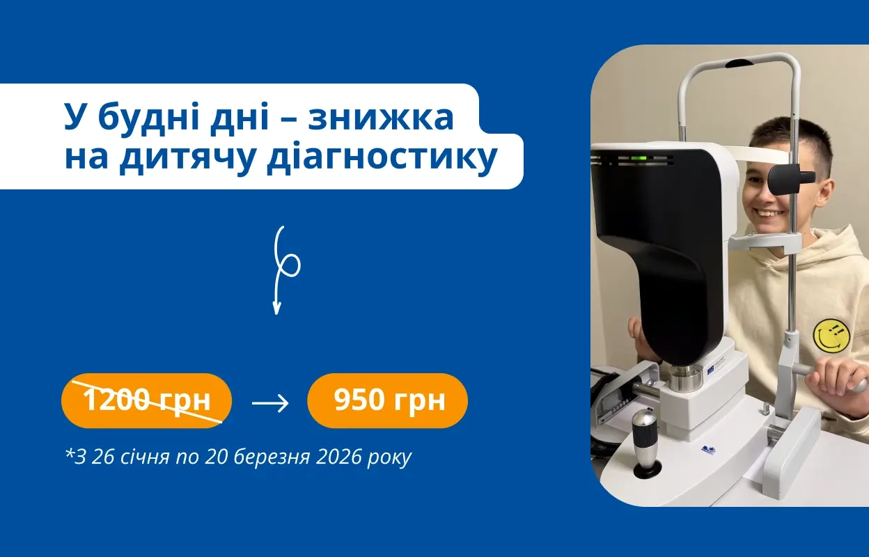 З 26 січня по 27 лютого в «Офтальміці» діятиме знижка на комплексну дитячу діагностику зору.