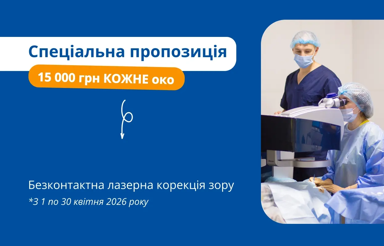 з 1 по 30 квітня вартість лазерної корекції зору за одне око – 15 000 грн!